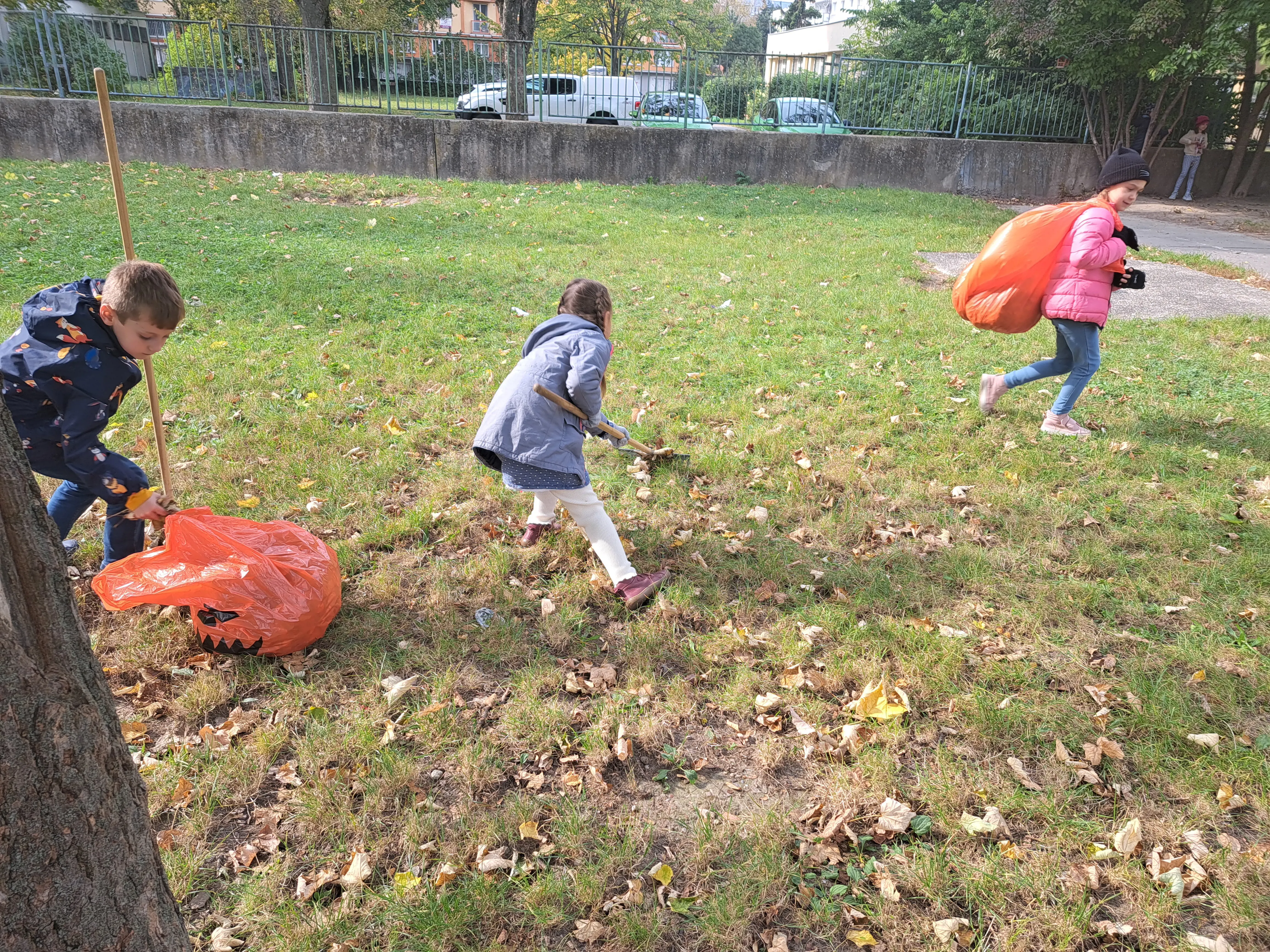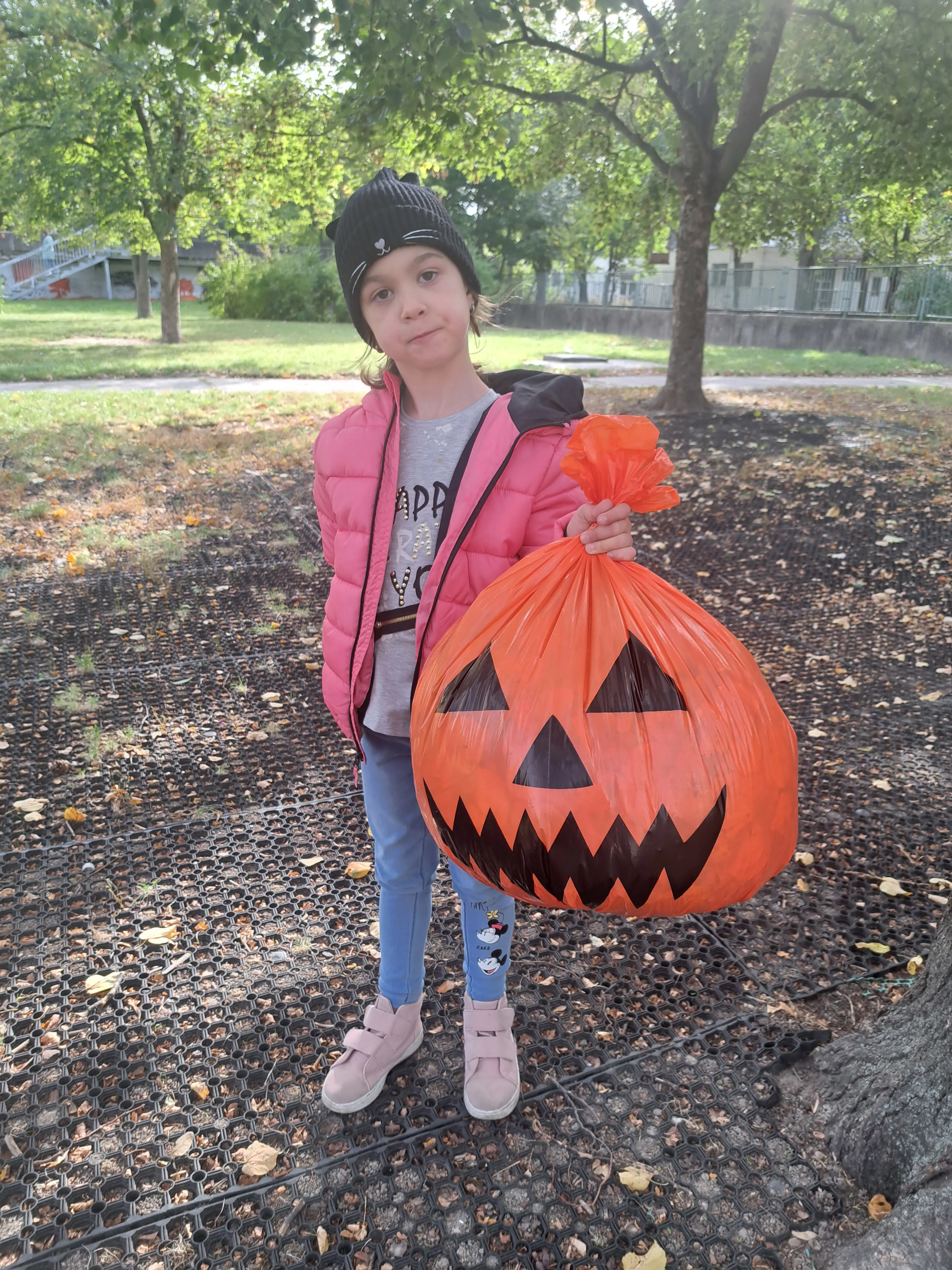 Aj jesenná brigáda môže byť zábavná. Stačili nám na to oranžové vrecia na lístie v tvare tekvíc. Pohrabali sme lístie, zabavili sme sa a vyzdobili sme si náš školský dvor. 1.C