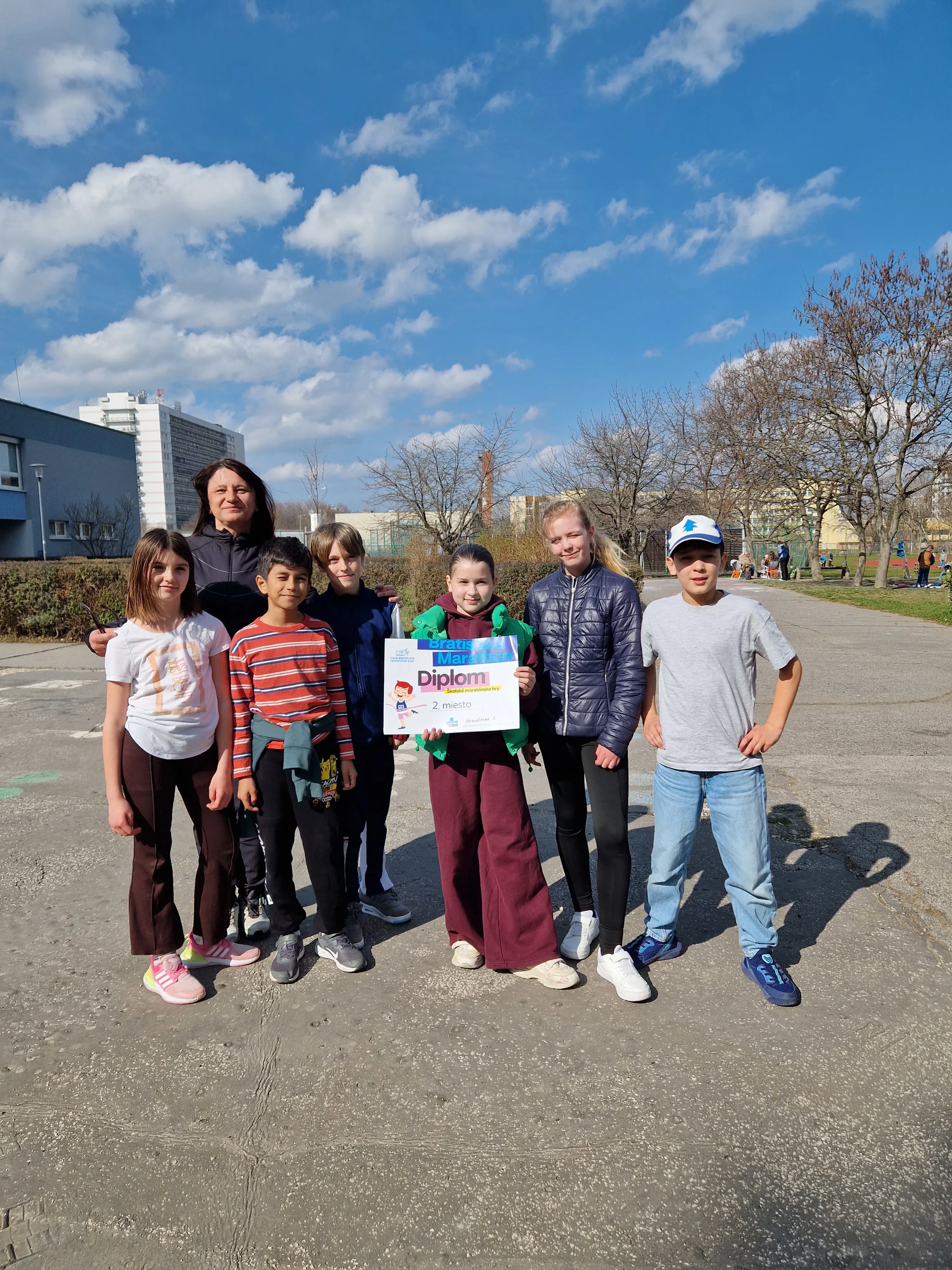 V rámci ČSOB Bratislava maratón sa dňa 13.3.2026 uskutočnilo tretie základné okresné kolo súťaže pre školy primárneho vzdelávania z mestských časti Bratislavy a okresov BSK. Spomedzi 34 súžiacich družstiev si naši žiaci vybojovali krásne 2. miesto a postup do finále. Ďakujeme za reprezentáciu školy a naďalej držíme palce!
