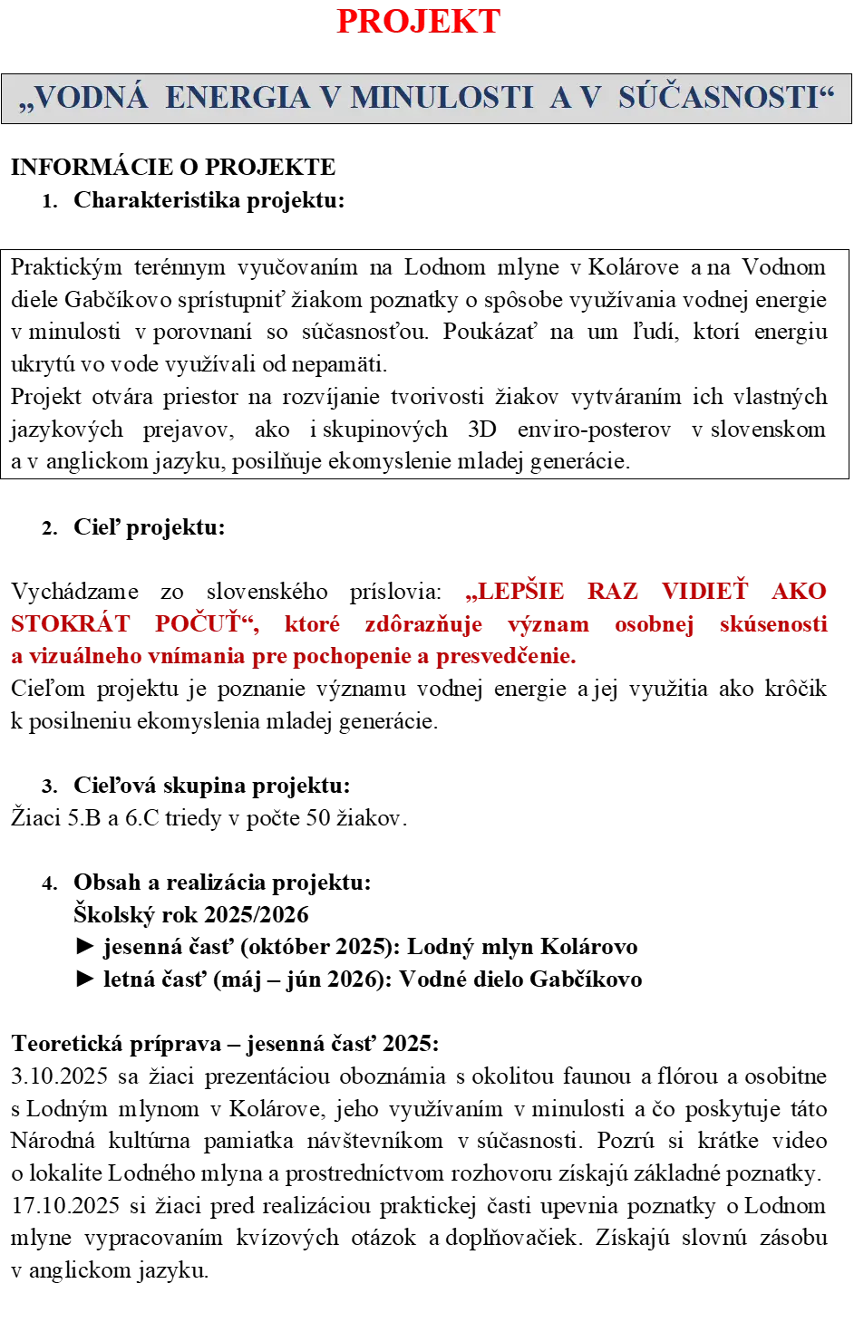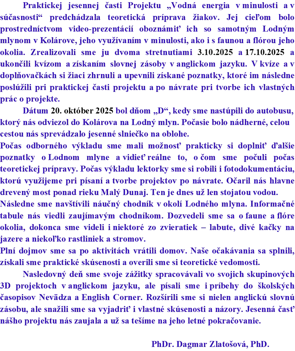 Projekt "Vodná energia v minulosti a súčasnosti" - jesenná časť