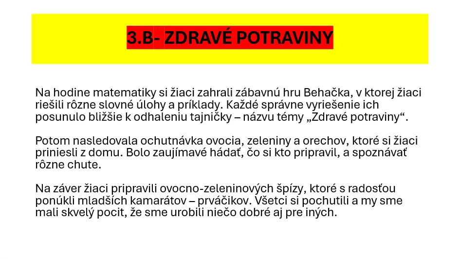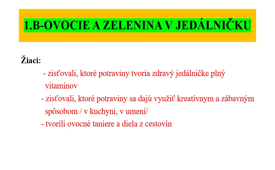 do súťažno- vzdelávacej aktivity Hovorme o jedle.