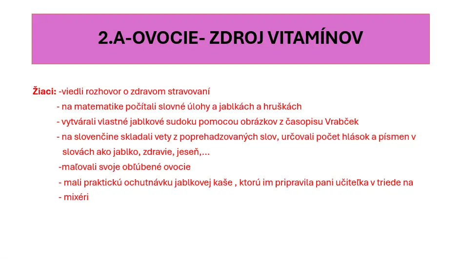 Súťažno-vzdelávacia aktivita Hovorme o jedle - Zelenina, ovocie, orechy z našich sadov