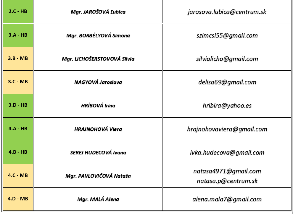 2.A - HB | Mgr. MACUDZINSKÁ Zdena | Mgr. MIČUGA Silvia |